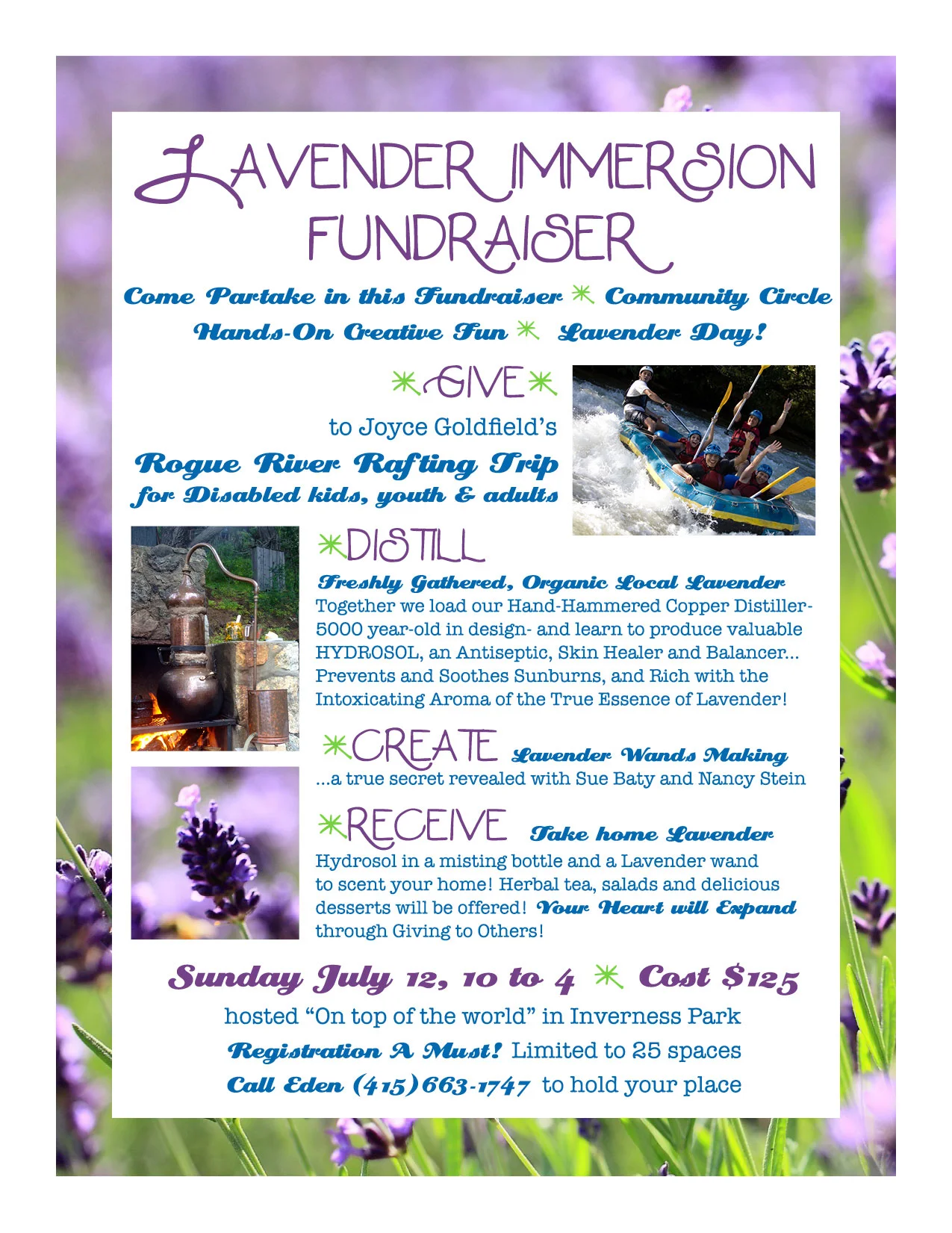 Lavender Immersion to Benefit Handicapped Youth & Adult River Rafting Trip! Call Eden at (415)663-1747 to reserve your place.
